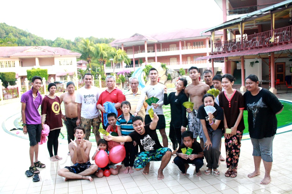 1 apartment ade 2 bilik n satu bilik air. Rm280x2 Apartment disewa.ok gak untuk org yg bercuti family ramai2.....besar ..ade dapur nak masak2...nak tdo luar atau dlm bilik pun tiada masalah! yang paling penting ade SWIMMING POOL ...huhuhu..itu yang kite mahu =) untuk hari pertama mmgtema pool..x de pantai2...sbb smua cousin aku yg kecik2 nak mandi pool. Tp rupenye smua pun terjun! haha...Wan aku pun turun mandi...Wan korang boleh? lgpun pool die x de syarat kene pki ketat2..sosmua ble la TERJUN! gedebush! First day wat Game skit! MMg heyPENING...hahah..syiook habis!